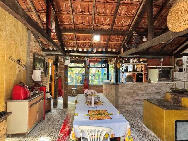 Conta com uma charmosa área gourmet completa, equipada com fogão a lenha, forno e churrasqueira, perfeita para momentos especiais. A construção em madeira aparente e telhado com telhas cerâmicas traz um visual rústico e acolhedor, com excelente ventilação e iluminação natural.